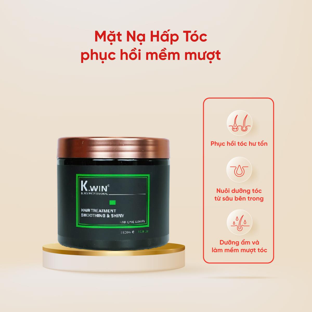 + Xả sạch lại với nước ấm và có thể dùng thêm dầu xả K.win để tóc đạt hiệu quả cao hơn