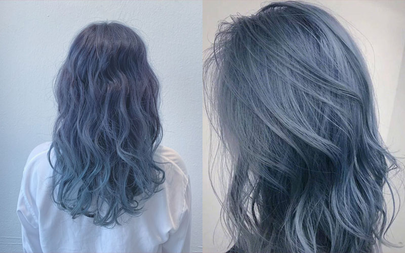 Không thể thiếu trong danh sách màu nhuộm tôn da đó chính là màu khói xanh. Màu tóc này được rất nhiều người yêu thích. Chỉ cần nâng tông tóc hoặc tẩy nhẹ, bạn đã có được một màu siêu tây, siêu tôn da và không hề kén người nhuộm.